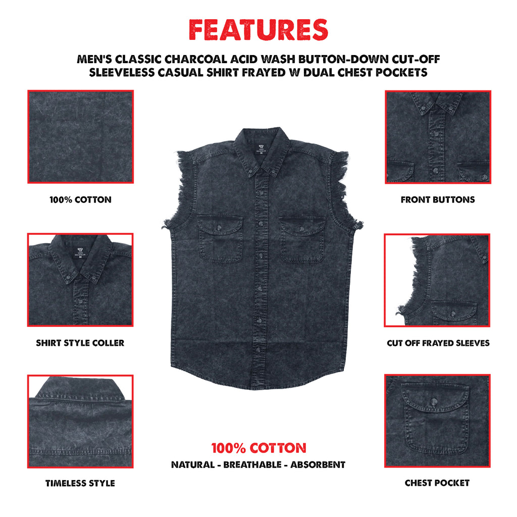 Introducing the ultimate Biker Cut-Off Sleeveless Shirt in Charcoal Acid Wash - where durability meets style!
