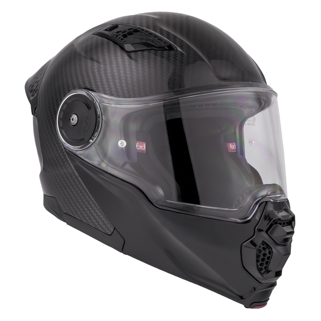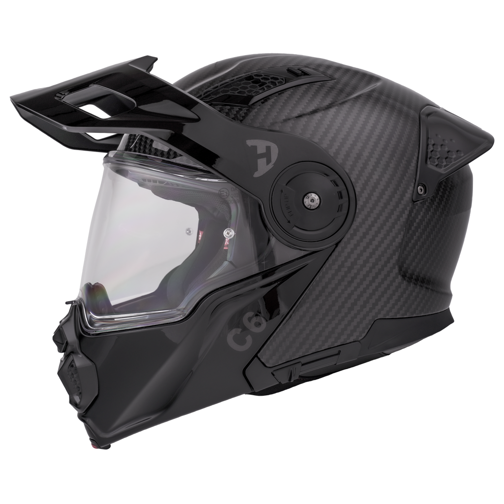 The D.O.T. And ECE Daytona C6 Modular Helmet, With Inner Anti-Scratch Retractable Smoke Shield, In Carbon Fiber, Meets And Exceeds D.O.T. FMVSS 218 And ECE 22R06 Standards. With 2 Different Shell Sizes, You're Sure To Get That Proportionate Fit!! Features A Dual Shield System; Outer Anti-Scratch Clear Shield With Pinlock 120 Lens (Anti-Fog) And Inner Anti-Scratch Retractable Smoke Shield. Also Has A Quick Release Lock Retention System; One Finger Release Lever For Easy Detachment, Adjustable Chin And Forehead Ventilation, A Removable Aerodynamic Visor And A Removable, Hand Washable Interior (Moisture Wicking Fabric). Bluetooth Compatible. Cloth Draw String Bag Included.
