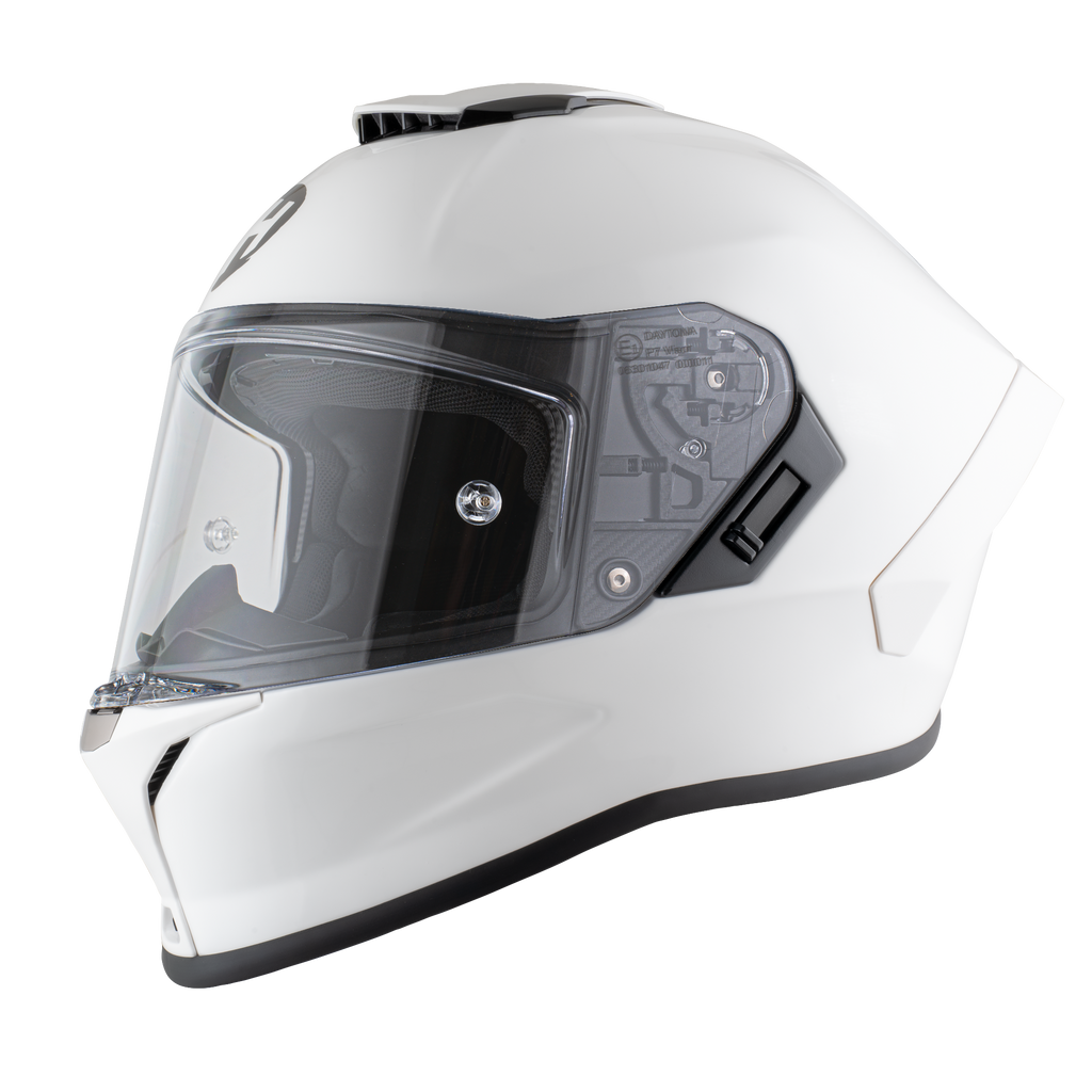 The D.O.T. And ECE Daytona Viper Helmet, With Inner Anti-Scratch Retractable Smoke Shield, Meets And Exceeds D.O.T. FMVSS 218 And ECE 22R06 Standards. With 2 Different Shell Sizes, You're Sure To Get That Proportionate Fit!! Features A Dual Shield System; Outer Anti-Scratch Clear Shield With Pinlock 120 Lens (Anti-Fog) And Inner Anti-Scratch Retractable Smoke Shield. Also Has A Quick Release Lock Retention System; One Finger Release Lever For Easy Detachment, Passive Chin And Forehead Ventilation, And A Removable, Hand Washable Interior (Moisture Wicking Fabric). Bluetooth Compatible. Cloth Draw String Bag Included.