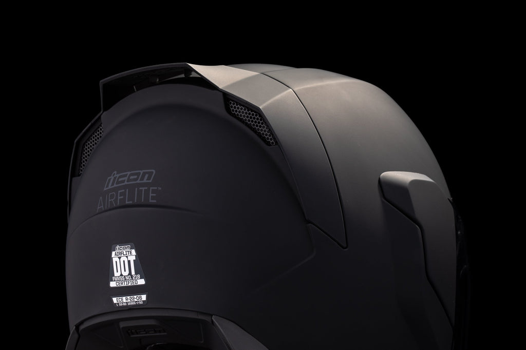 The Airflite Dark Helmet features our exclusive black Rubatone finished polycarbonate shell paired with a Dark Smoke Fog-Free Forceshield™. It also includes a clear Fog-Free Fliteshield™. Inside, a Dark Smoke internal DropShield™ can be raised and lowered even with gloves on for easy day-to-night riding. The moisture-wicking Hydradry™ liner can be removed and washed. The helmet features ECE 22.06 certification.