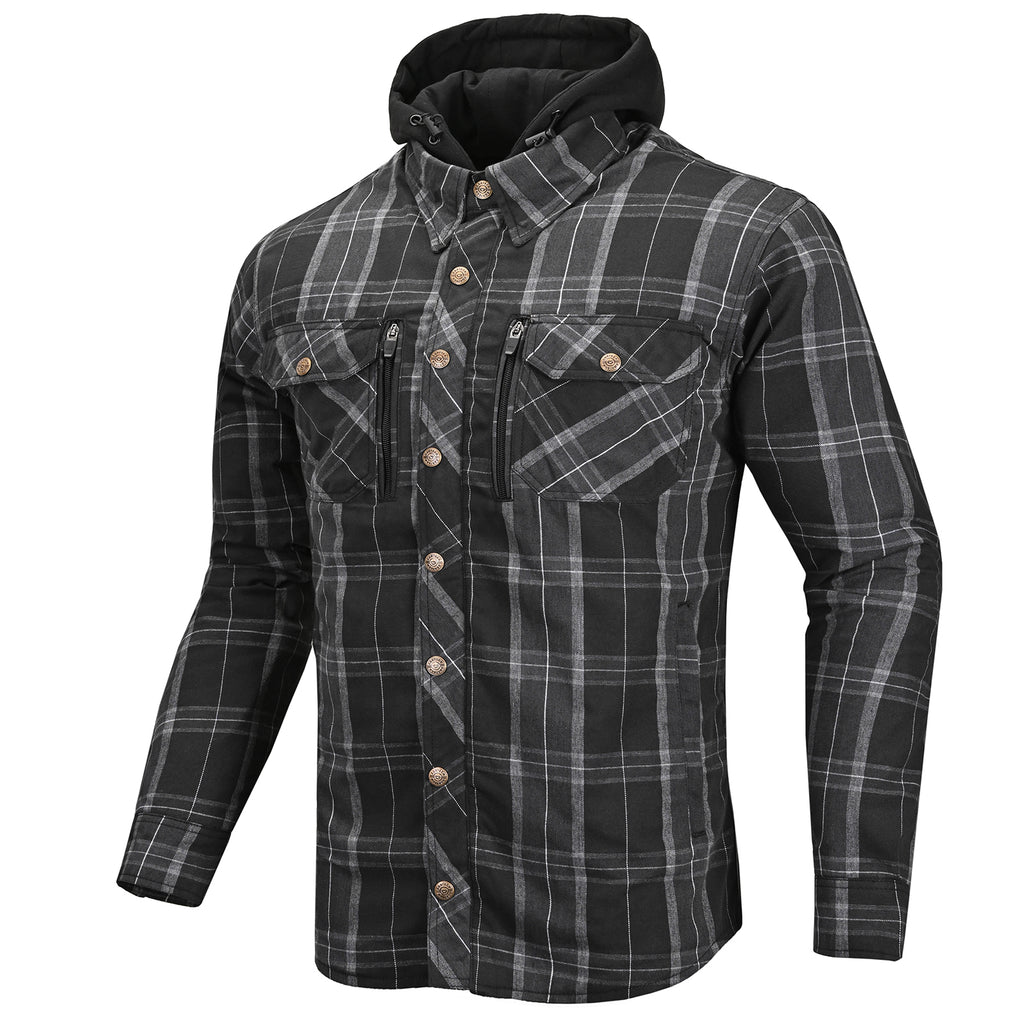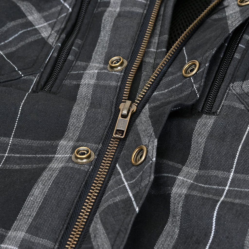 The Cortech El Camino Riding Flannel is the perfect blend of classic, everyday comfort with advanced protection. Featuring a heavy-duty 4.5oz 100% cotton flannel outer layer, this jacket is reinforced with Cortech Syncromesh™ mesh for added durability and DuPont™ Kevlar® at the elbows and shoulders for enhanced abrasion resistance. Inside, the Armanox™ CE Level 1 armor provides impact protection without compromising comfort or style. With ventilation in mind, the El Camino comes equipped with hidden underarm zippered vents for airflow, and a removable fleece hood adds warmth when off the bike. Its snap and zippered main closure provide a secure fit, while the pre-curved sleeves and adjustable cuffs enhance comfort and mobility on the bike. For storage, you get waterproof compartments, including a dual-snap concealed carry pocket, giving you secure, easy access to essentials. The El Camino Riding Flannel is your go-to jacket for rides where you demand both style and performance.