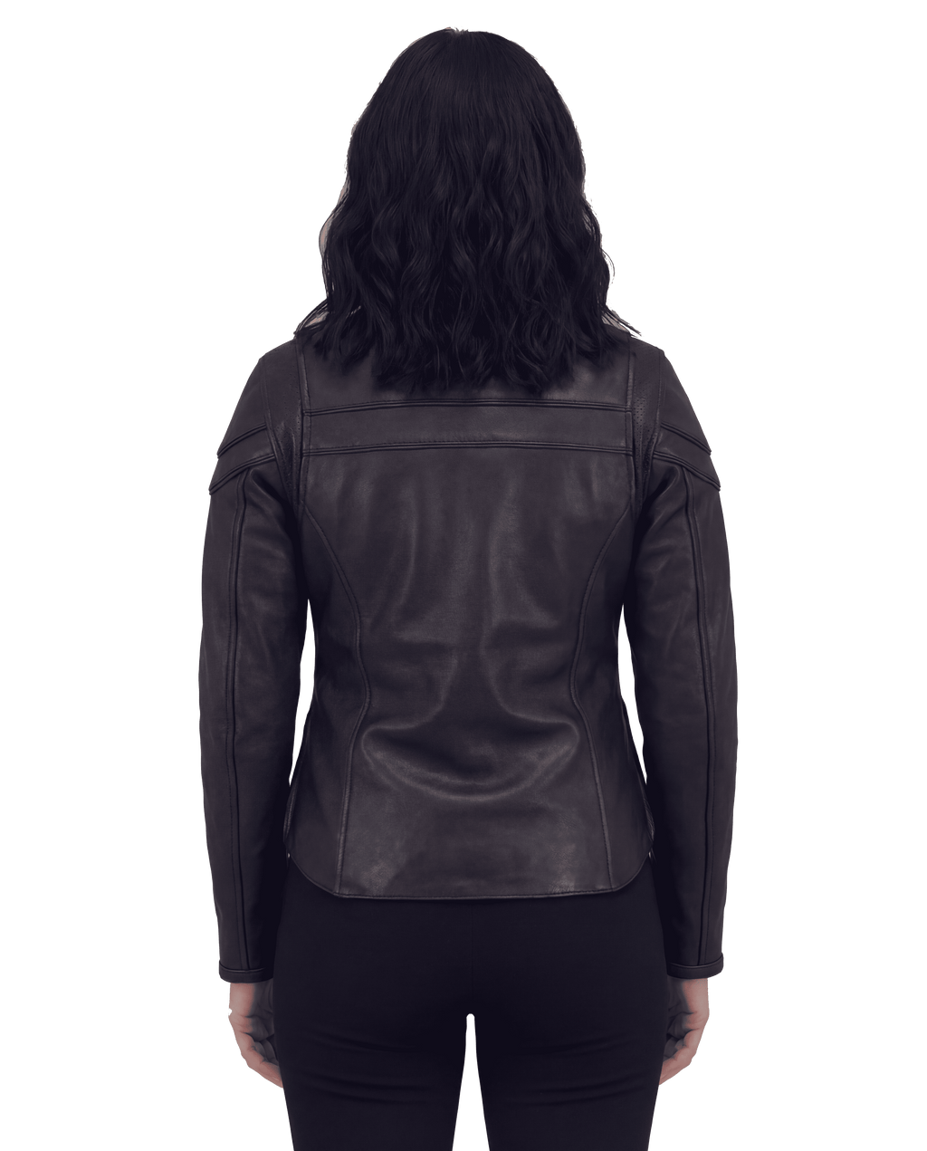 Vance Leather Women's Black Soft Cowhide Leather Sporty Scooter Crossover Biker Motorcycle Riding Jacket.