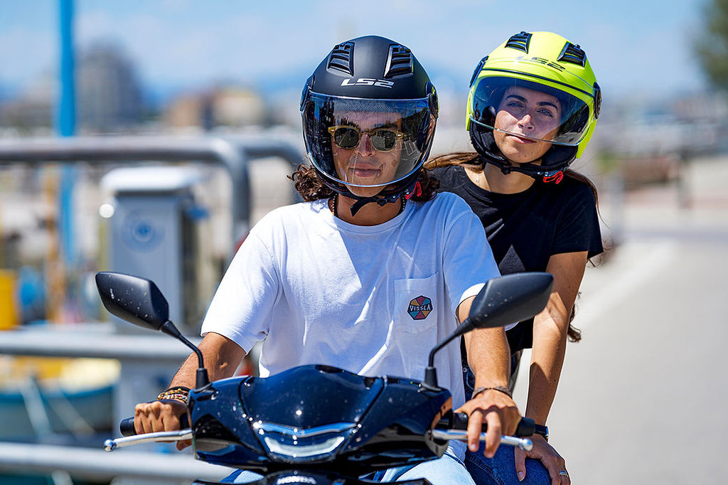 A commitment that combines the classic features of an urban model with the benefits of a full face helmet, such as its two visors, exterior and solar, which adapt to all types of situations in the asphalt jungle.