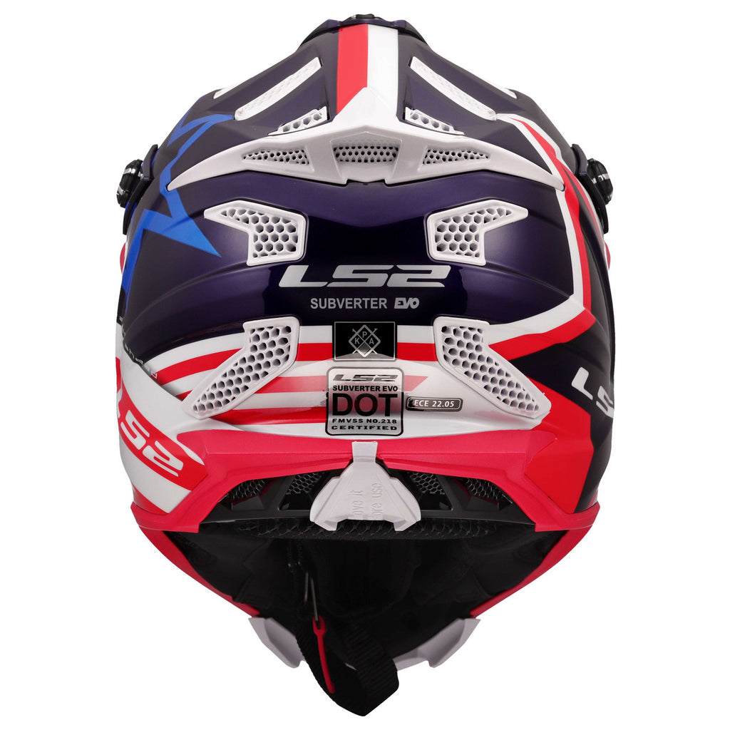 Responding to customer requests for high end MX and off-road performance at a value price LS2 has applied the latest in technology to revise our popular Subverter. The new Subverter EVO utilizes Kinetic Polymer Alloy (KPA) offering energy managing flexibility and penetration resistance equal to high end fiber products for the shell. We have added a high performance multi density EPS for state of the art impact management. 35 separate air intake ports allow for the absolute maximum ventilation of any MX helmet on the market today. A wide eye port accommodates virtually any popular goggle. The fully removable and washable high end comfort padding keeps the rider fresh and comfortable whether racing or spending a day on the trails. LS2 uses a Double D-ring chin strap for ultimate security. The LS2 Helmets MX Subverter EVO makes high end technology available at an extraordinary value.