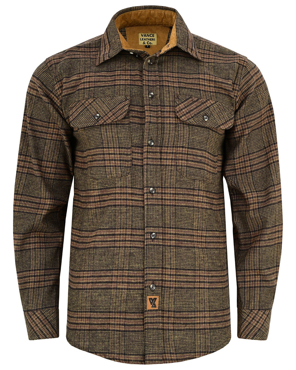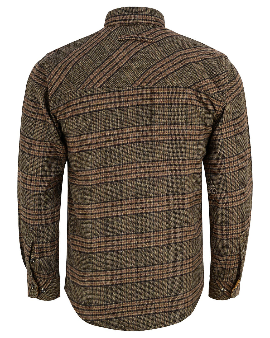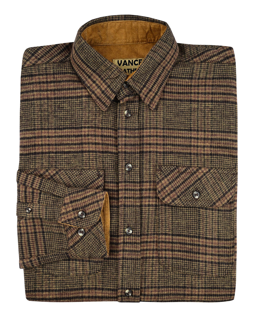 Subtle yet striking pattern in olive‑brown, rust, and charcoal for an outdoors‑inspired look that pairs seamlessly with denim, canvas, or leather. -