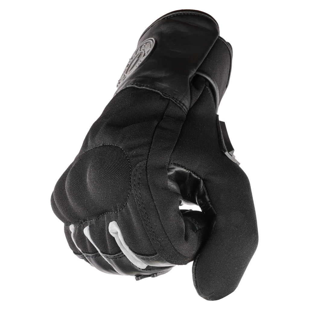 Be ready for whatever comes at you with the MISSION WATERPROOF RIDING GLOVES. The Top of the hand features a 70 gram thinsulate liner & 4mm of polyester foam for warmth. While the genuine cowhide leather palm has only 2mm of foam padding for ultimate control and comfort. A water repellant polyester shell paired with Hipora® waterproof liner prevents water from coming in while letting moisture out. Reflective polyester accents, internal flexible knuckle protection, and a TPR visor wiper allow you to ride safely in any condition.