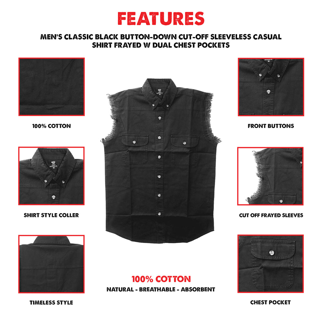 Crafted with 100% cotton and designed to keep you cool and comfortable, this versatile shirt effortlessly transitions from a hard day's work to a night out on the town. With its sleek lines and professional collar, you'll exude confidence and sophistication while embracing your inner biker. Don't compromise on comfort or style; make a statement with our Biker Cut-Off Sleeveless Shirt today!