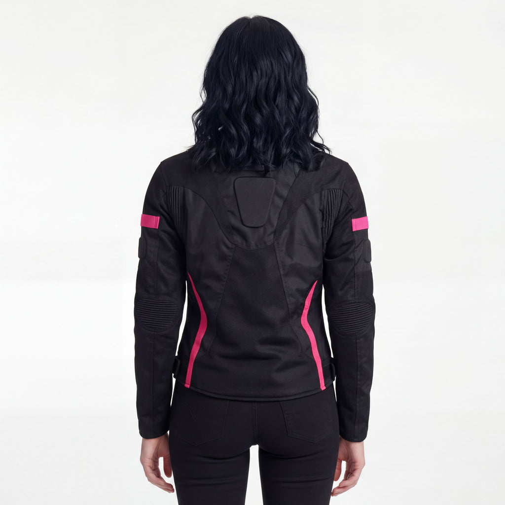 Women's Black Pink All Weather Season CE Armor Lady Biker Mesh Motorcycle Riding Jacket.